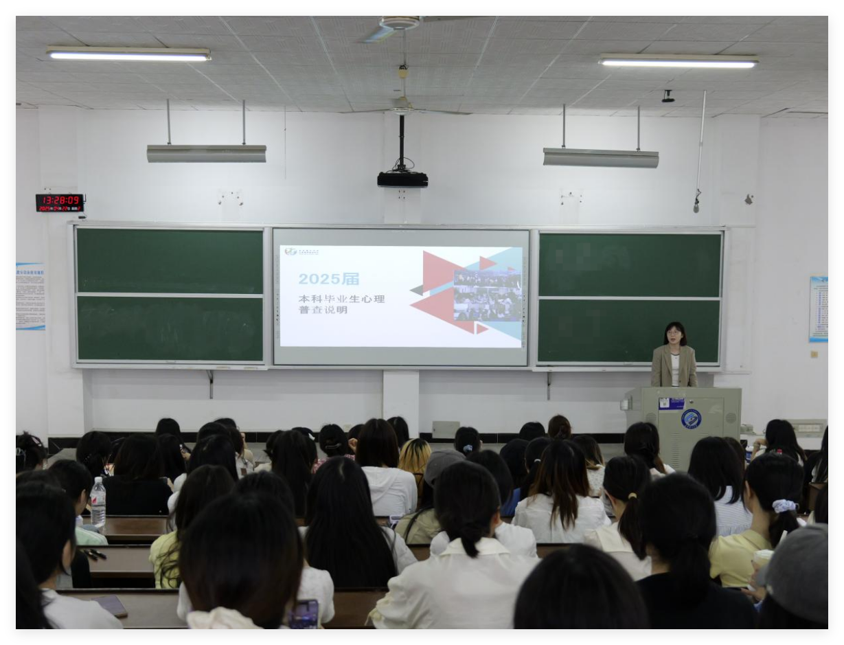 此次大会开始前,学院心理辅导员李婵老师对2025届本科毕业生开展心理普查,对普查相关注意事项进行了说明,强调加强就业心理健康教育的重要性。