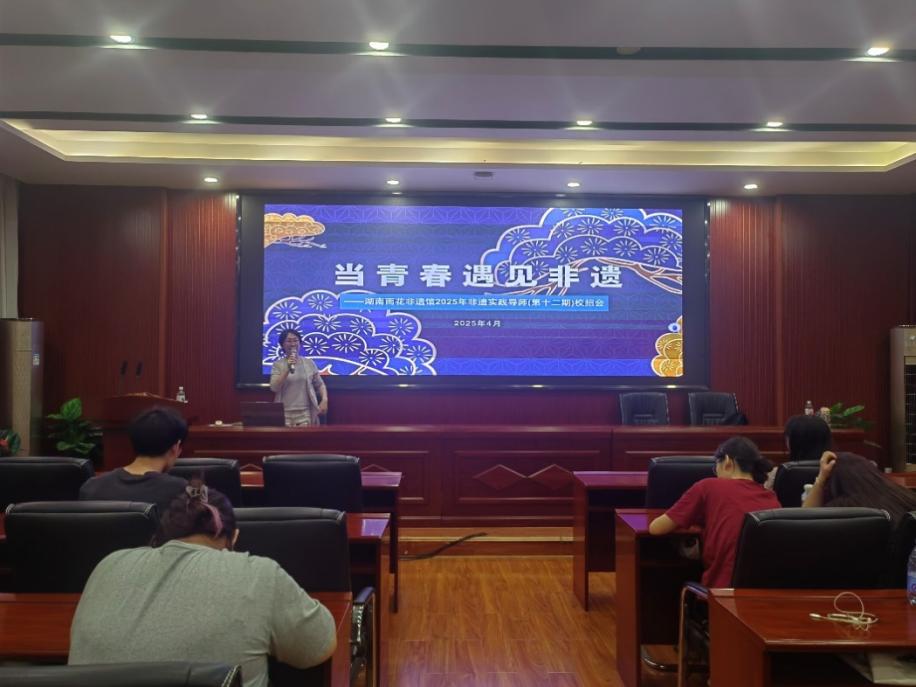 2025年5月9日,文新学院邀请湖南雨花非遗馆在九教218会议室举办第十二期非遗实践导师招募宣讲会。