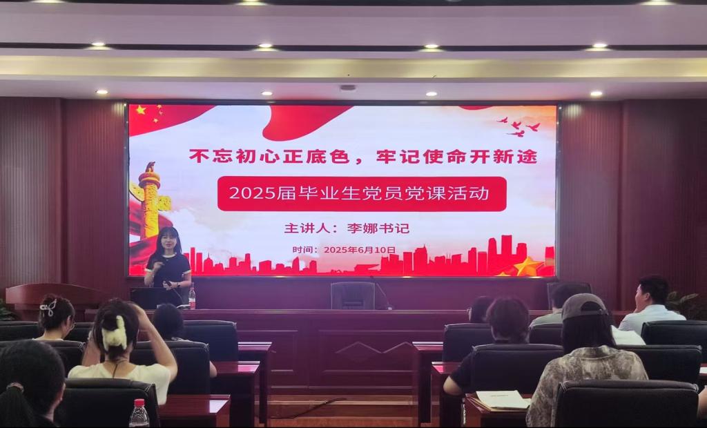 讲好“一堂课”,理论基础更扎实。各党支部将习近平总书记发表的重要讲话、作出的重要指示批示精神作为首要学习任务,列为支部党日活动“第一议题”进行学习。各党支部按照指认真学习领会习近平总书记关于党的建设的重要论述。文新学院李娜书记以“不忘初心正使命,牢记使命开新途”为题进行毕业生党员党课宣讲,从增强党员意识、热爱校友身份、积极努力工作、培养扎实能力等几个方面对毕业生党员进行离校教育,强调遵守党规党纪,保持优良作风,打造有纪律、有活力、有作为的模范支部。同时要求毕业生用心做好每一份工作接,为未来的发展积蓄力量。最后送上真挚祝福,希望毕业生党员在新的单位学业进步、工作顺利。课后,由李娜书记领誓,2025届毕业生党员重温入党誓词。