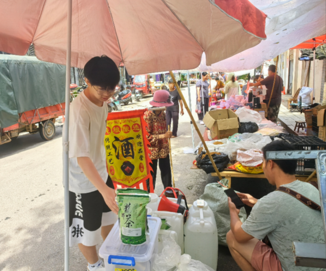 6月29日早上九点半,梭子丘村十天一次的市集已然人头攒动。文新学院“文梭新韵”实践团成员在水果摊前停下脚步,一颗本地李子入口,甜味稀薄,果肉微涩。