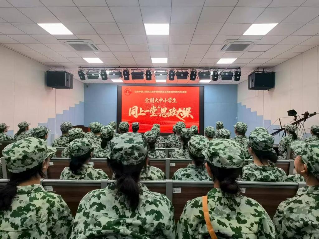 大一新生着军训服装有序就座,通过课程中“青年与抗战”的案例对比,感悟“一代人有一代人的长征”的深刻启示;团学干部结合自身学生工作实际,纷纷表示要传承抗战时期青年先锋奔赴前线的热血担当,在校园活动组织、志愿服务中主动作为。全体党员佩戴党徽认真聆听,新闻学本科生党支部王舒涵同志在观看后动情地说:“爱国不仅是铭记历史,更要转化为实干担当。抗战精神是跨越时空的宝贵财富,我们要做有骨气、有底气的新时代青年。”
