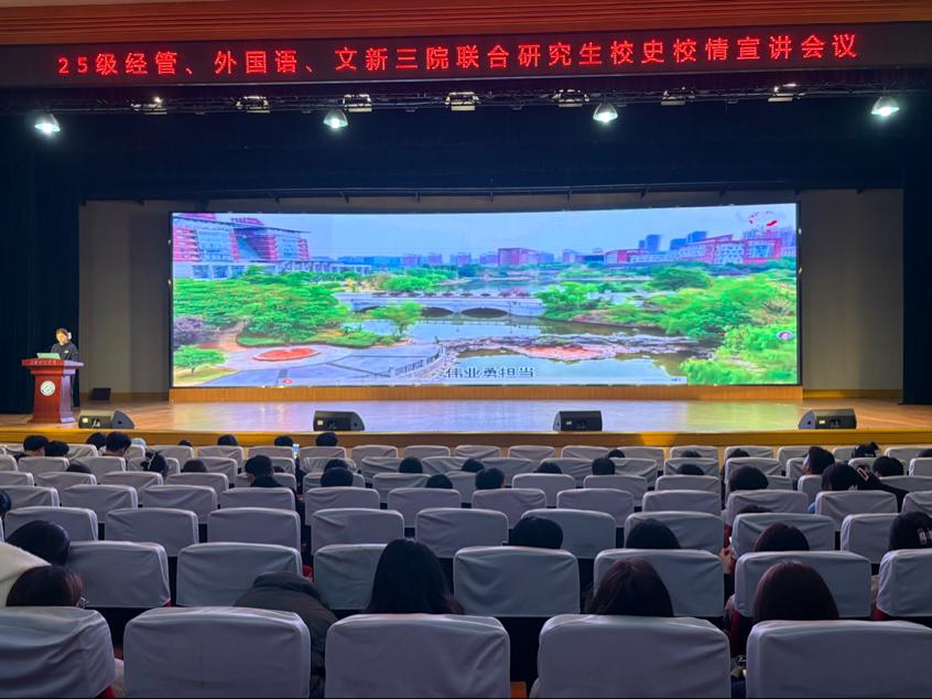 为帮助2025级研究生新生深入了解学校发展历程,增强对学校的认同感和归属感,11月4日晚上,文学与新闻传播学院、经济与管理学院、外国语学院于金盆岭校区五教大礼堂联合举办校史校情专题讲座。全体研究生新生参加本次活动,讲座由william威廉中文官网研究生宣讲团成员主讲。