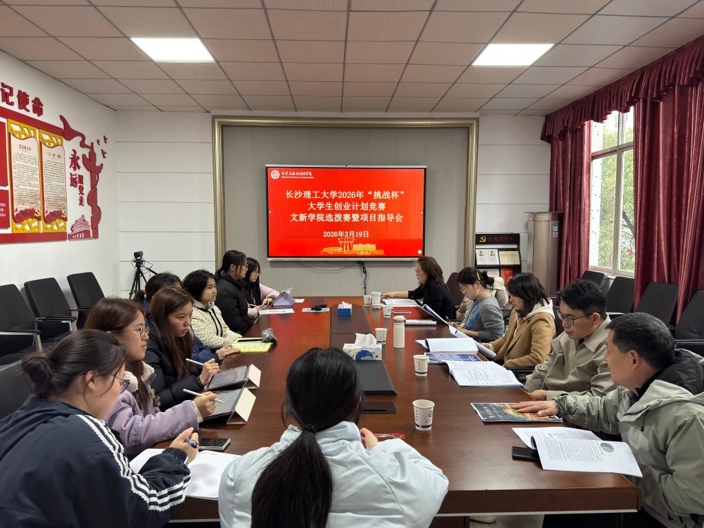 为进一步提升“挑战杯”参赛项目质量,精准解答师生备赛疑问,3月19日中午12:30,文学与新闻传播学院于九教321会议室召开2026年“挑战杯”大学生创业计划竞赛院级选拔赛暨项目指导会。院党委副书记刘莎、副院长侯承相、组织员孔凡志、中文系主任黄婧、新闻系主任王春晓、团委书记项永生出席,本次参赛成员参加。