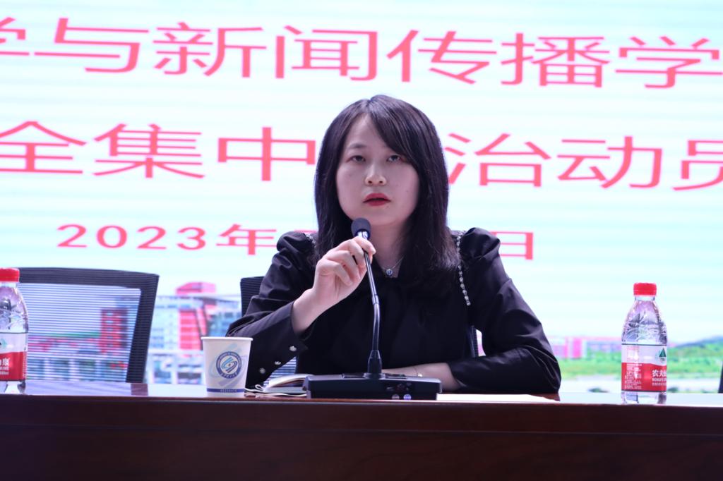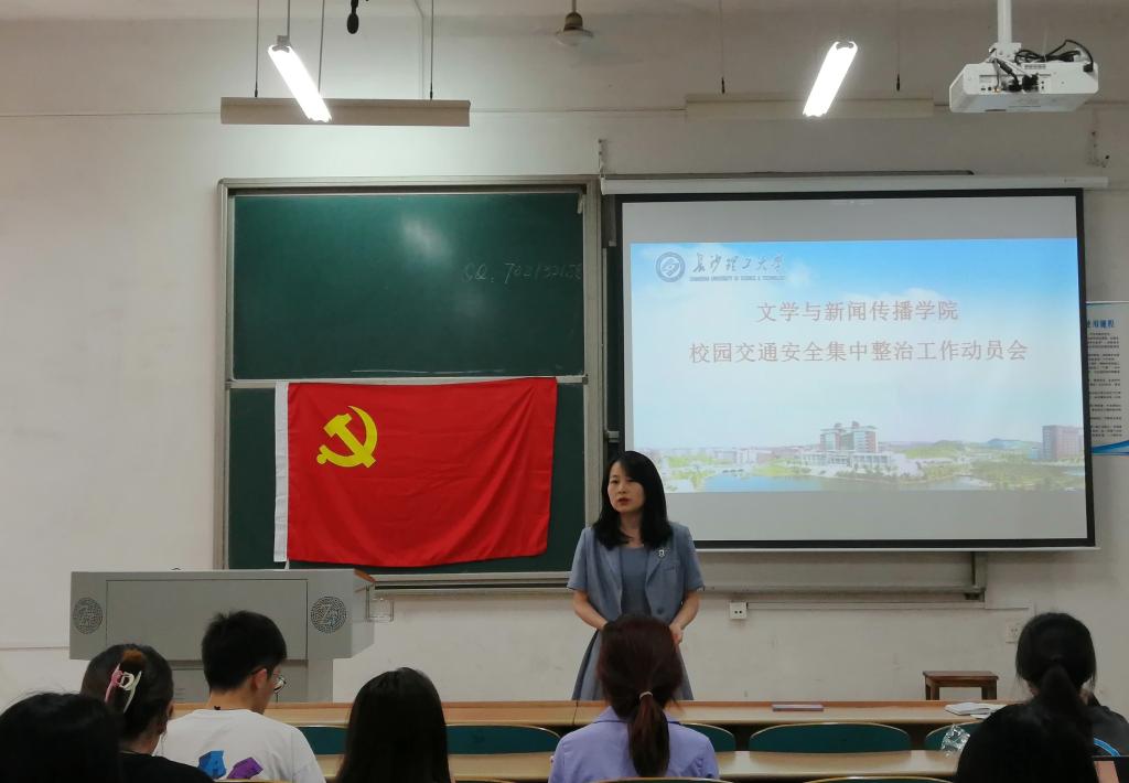 为进一步提升学生交通安全出行的规则意识、法治意识和文明意识,切实保障生命安全,打造安全、文明、有序、和谐的校园环境,5月23日至25日,文新学院组织召开校园交通安全集中整治学生党员和干部动员会,文新学院党委副书记刘莎主持会议。