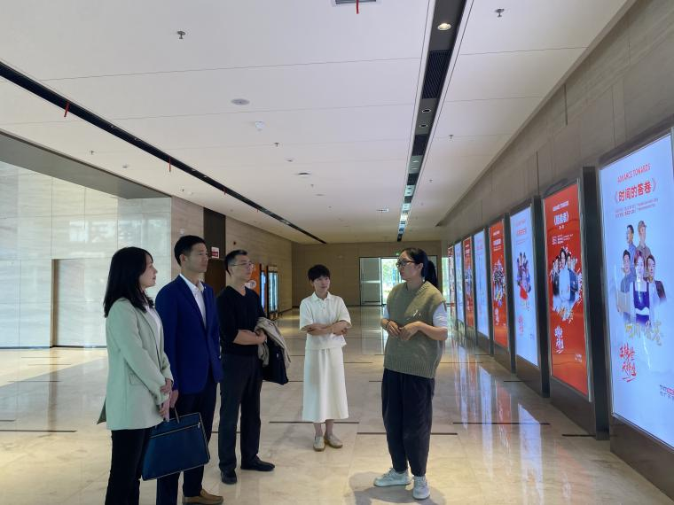 刘建新一行先后参观了中广天择传媒股份有限公司演播厅、蛙酷传媒工作室等并分别开展了座谈,两家企业负责人介绍了公司创建和发展的基本情况。在交流过程中,陈仁凯介绍了文新学院的办学特色与人才培养情况,并与两家企业负责人就岗位开拓、人才培育、校企合作等方面进行深入交流与探讨;院长刘建新也表达了与对方单位合作共建文学和新闻学科教学科研实践实习基地的意向,希望双方共同为校企联培、未来发展贡献智慧与力量。