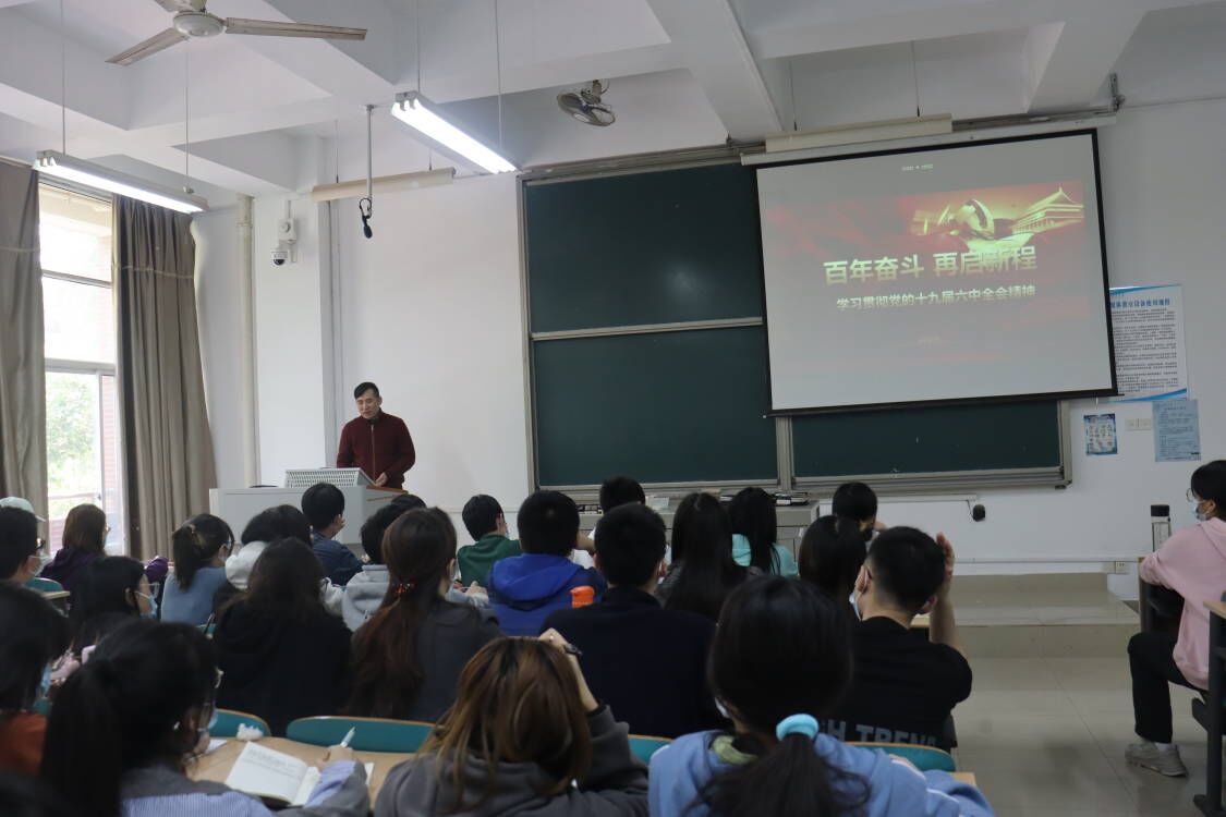 黄前程首先全面解读了党的十九届六中全会,介绍了全会议程、全会成就以及全会重要意义等。其次重点讲解了全会审议通过的《中共中央关于党的百年奋斗重大成就和历史经验的决议》(以下简称《决议》)的主要内容和历史地位,联系历史,结合实际,对《决议》进行详细解读。最后总结了如何全面贯彻落实党的十九届六中全会精神,要坚决做到“两个维护”,切实增强“四个意识”,坚定“四个自信”,锐意进取,攻坚克难,扎扎实实走好新时代赶考路。