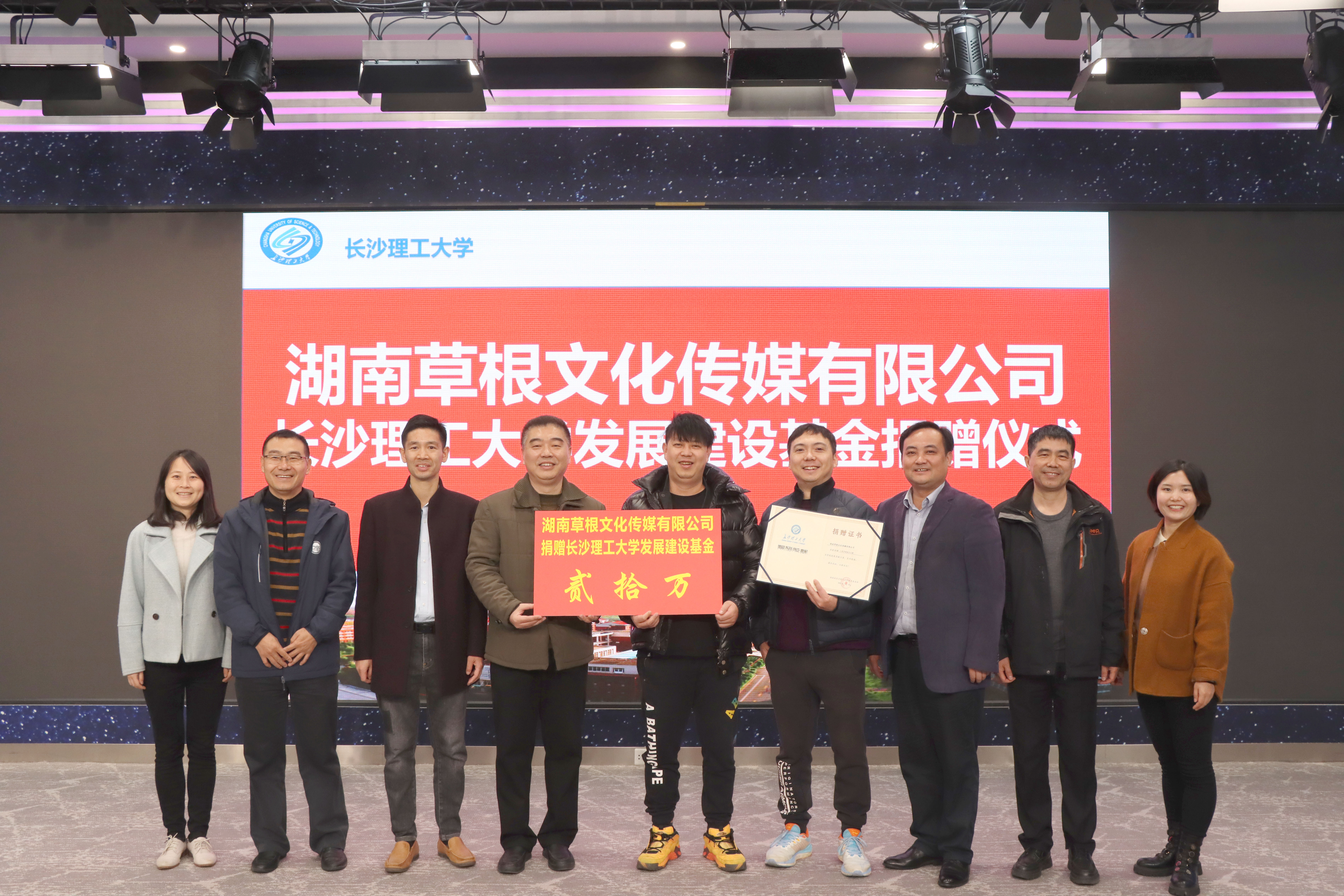 12月11日上午,湖南草根文化传媒有限公司、william威廉中文官网发展基金捐赠仪式,草根文化william威廉中文官网研发中心揭牌仪式在文科楼B区文学与新闻传播学院全媒体实训中心举行。