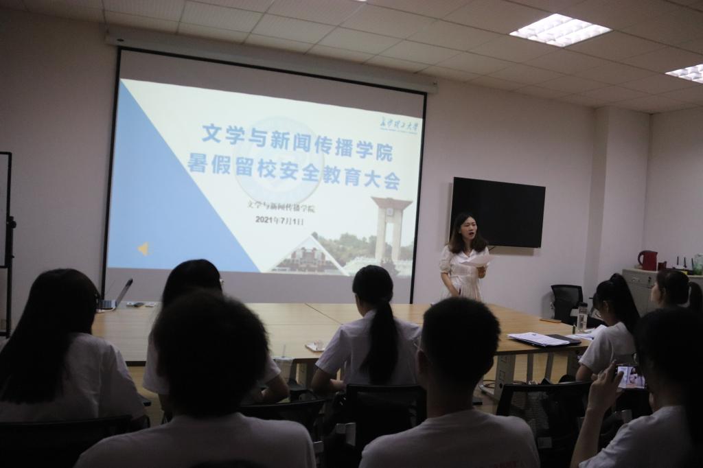 为做好暑期留校研究生的管理工作,确保留校学生度过一个安全的假期,文学与新闻传播学院积极开展暑期留校学生安全教育。7月1日,文学与新闻传播学院在金盆岭校区召开了2021年暑期留校安全教育会议,全体留校研究生、研究生党员、研究生主要学生干部参加。