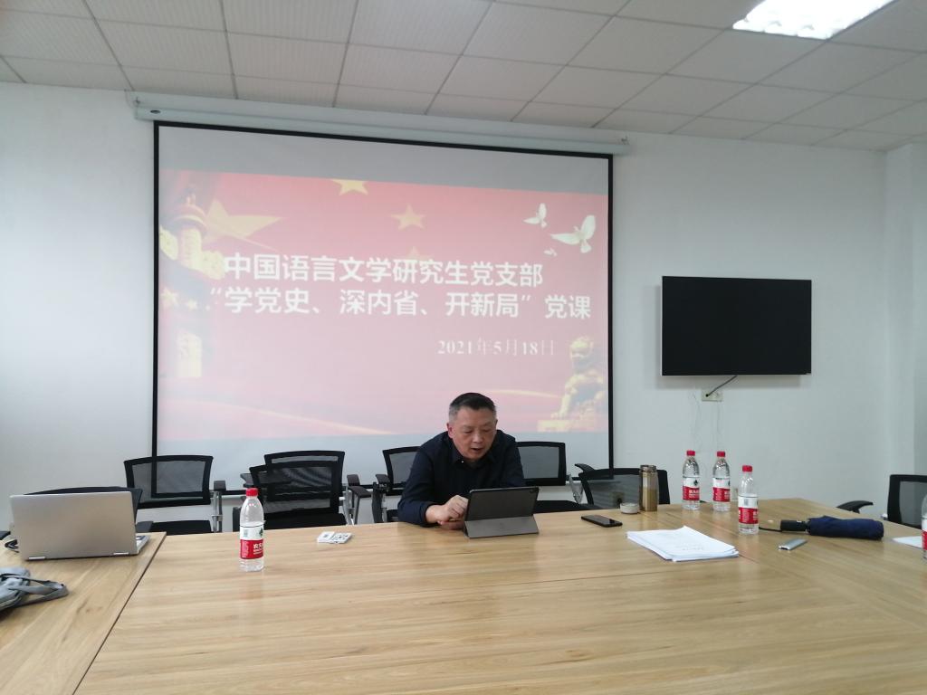 为进一步落实研究生党史学习教育,5月18日下午4点,文新学院副院长周云鹏于金盆岭7教给中国语言文学研究生党支部全体党员同志讲授“学党史、深内省、开新局”专题党课。