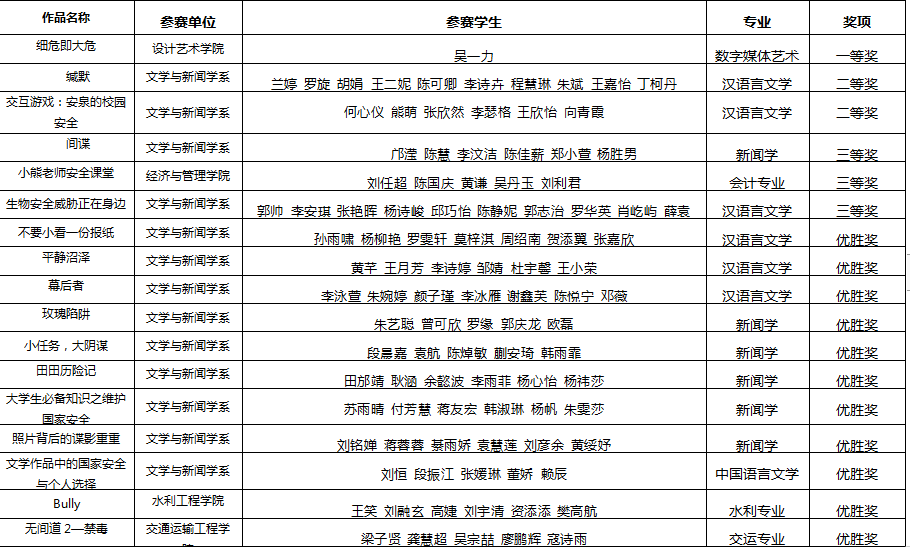 为进一步增强学生的国家安全意识,推进国家安全教育进校园、进课堂、进头脑,营造学生良好的自觉履行维护国家安全责任义务和教育的氛围,切实增强广大师生维护国家安全的意识和能力,william在全校范围内开展了国家安全教育主题微视频比赛。本次微视频活动秉承自愿参加原则,经过初赛、决赛层层选拔,作品《细危即大危》荣获校级一等奖;《缄默》、《安泉的校园安全》荣获校级二等奖;《间谍》、《小熊老师安全课堂》、《生物安全威胁正在身边》等3个作品荣获校级三等奖;《小任务、大阴谋》等11个作品荣获优胜奖。