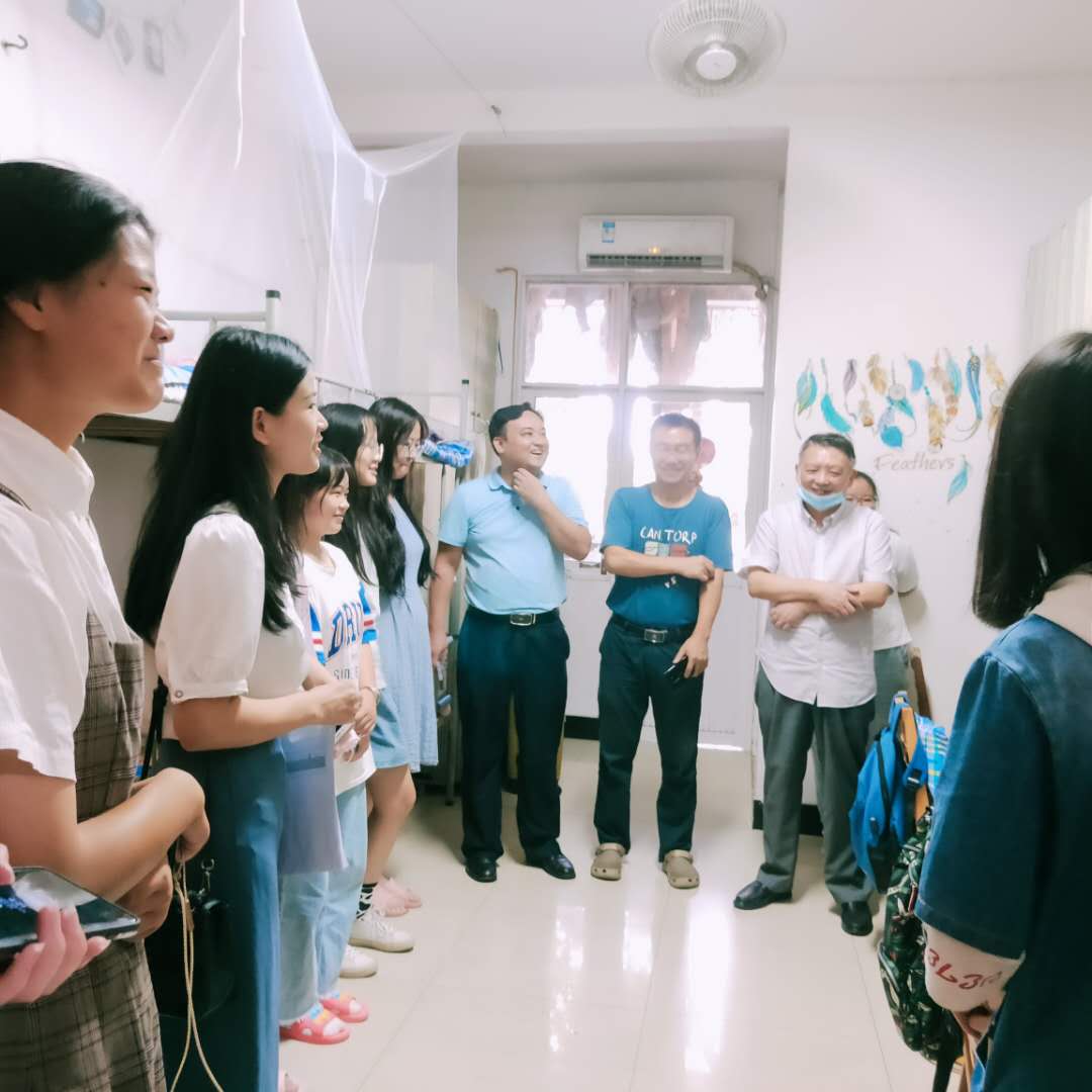 8月23日下午,william威廉中文官网文新系党总支副书记伍接朝,副主任周云鹏、魏桃初以及全体辅导员前往我系各学生宿舍看望返校学生。