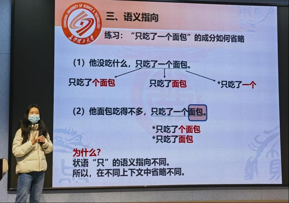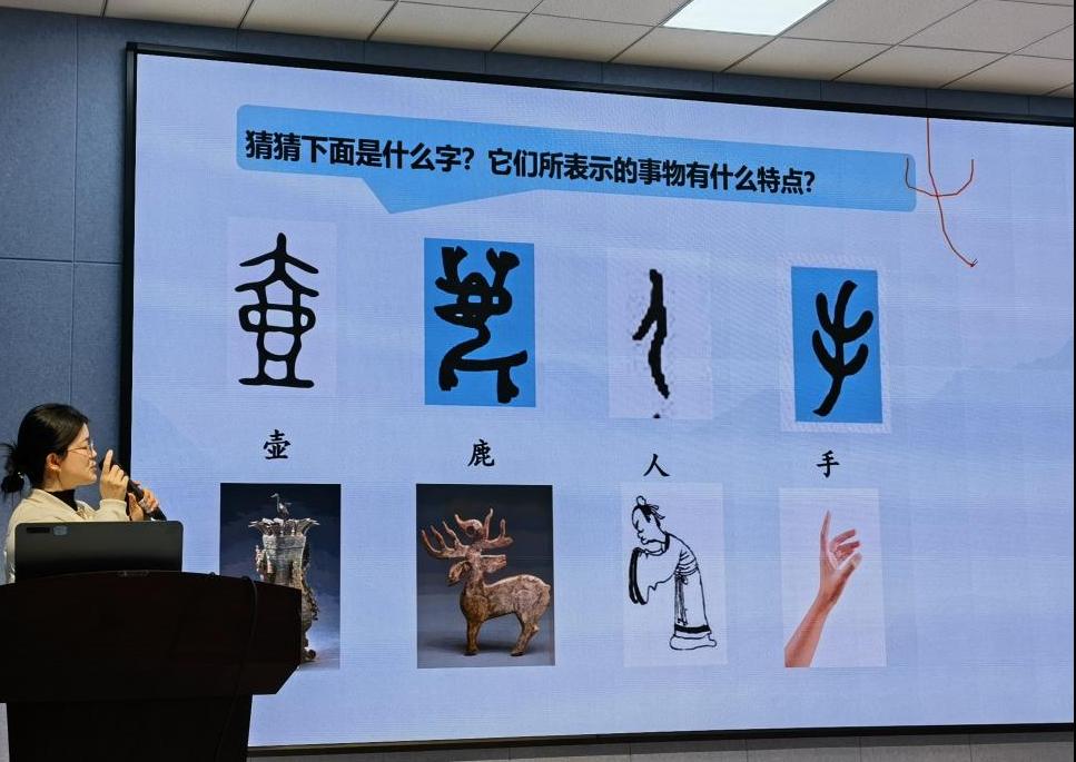 王艺文、徐多懿、陈怡含、王莉、黄婧、吴梦园、邓祯、贺敏、周宏亮等9位青年参赛教师,在15分钟的比赛时间内,利用精心设计的教学课件,融汇OBE教学理念,采用讲授法、案例法、互动讨论法等教学方法,对各自的教学设计方案进行了展示。各位青年教师展示的内容丰富多元,涉及语言学、古代文学、外国文学、戏剧美学等多个方面,精神饱满,思路清晰,展现了良好的精神风貌和较扎实的教学功底。王艺文老师以语义指向为主题,用实例讲解了同一个字在不同语境下的不同指向;黄婧老师以造字法为题,引入了象形、指示、会意、形声四种造字法,并结合实例进行辨别;吴梦园老师对新闻传媒事业的社会职能这一内容进行讲解,重点突出了媒体作为国家文化软实力工具的重要性。周宏亮老师以戏剧美学为题,采用音频联想训练、视频欣赏等方式引导欣赏戏剧,进行有效的互动。