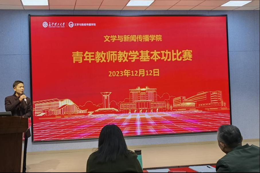 为进一步学习贯彻习近平新时代中国特色社会主义思想和党的二十大精神,全面深化新时代教师队伍建设改革,培养高素质教师队伍,进一步提升学院教学质量和教师教学水平,12月12日下午,文新学院在9教演播厅举行了2023年青年教师教学基本功比赛。黄婧、王艺文、吴梦园等9位青年教师积极参加了本次比赛,院长刘建新、副院长周云鹏、副院长(挂职)戴钰、李晓铭教授、院督导黄宇老师担任比赛评委,部分教师参加了现场观摩交流。比赛由戴钰主持。