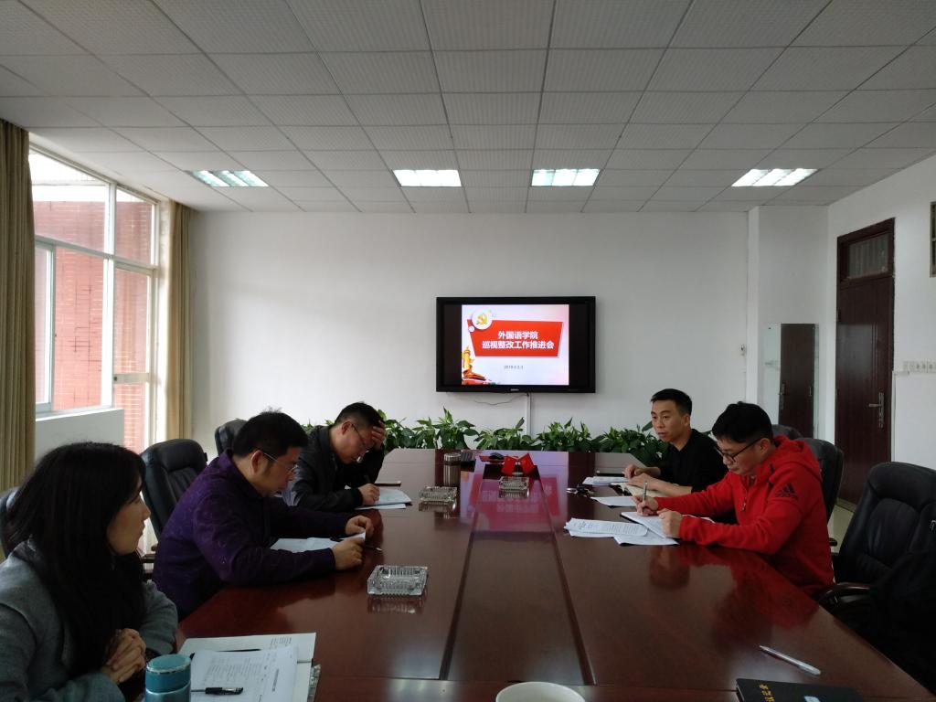 2019年3月28日下午,外国语学院召开党政联席会,专题布置巡视整改工作。党委副书记陈仁凯主持会议。