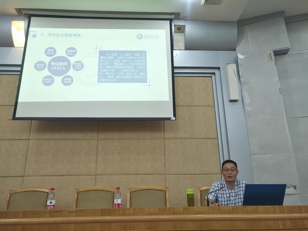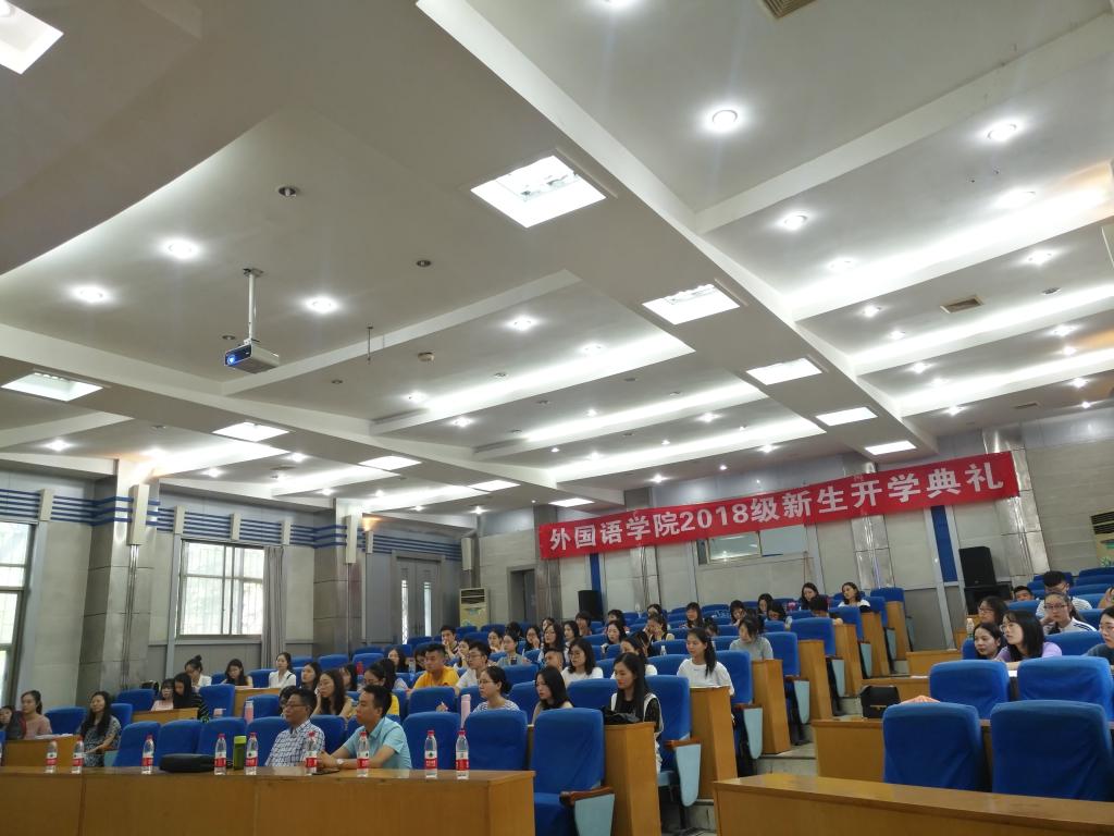 9月11日下午两点半,外国语学院2018级硕士研究生开学典礼暨院长第一课在金盆岭校区办公大楼一会议室举行。出席本次开学典礼的有学院院长段胜峰、党委副书记陈仁凯、副院长黄月华、副院长武俊辉、副院长黄坚、学工办禹敏、科研与研究生办马丁及黄昌梅、全体硕士生导师及全体2018级研究生。会议由学院副院长武俊辉主持,院长段胜峰主讲。