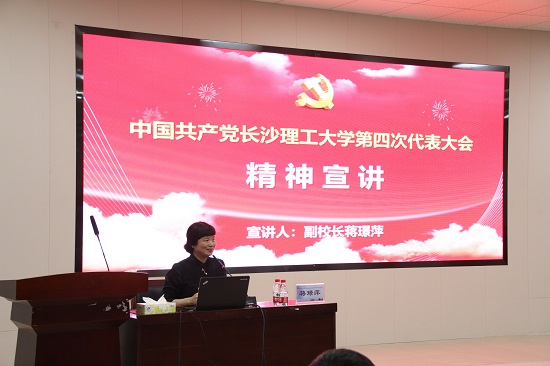 5月11日下午,学校党委委员、副校长蒋璟萍在文科楼A100学术报告厅为外国语学院与物电学院教职工宣讲学校第四次党代会精神。报告会由外国语学院院长段胜峰主持。外国语学院和物电学院教职工党员近200余人参加。