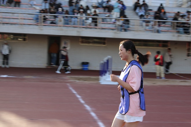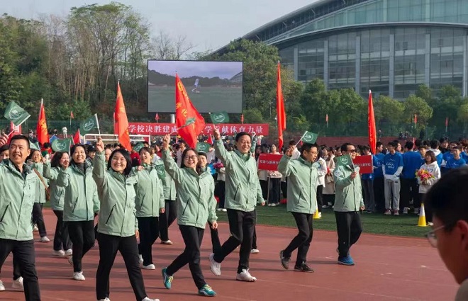 雷英老师回答:我觉得运动员们都很棒,也都尽了自己的能力。长绳比赛中,有一位女老师摔倒了,我们在一旁担心她是否受伤,但她说没事,就立马爬起来又继续进行比赛,她的这种集体荣誉感值得我们学习!学生们运动员也一样很努力!无论是为教师运动员服务的学生志愿者还是参加比赛的所有运动员,大家都尽心尽力,展现了外国语学院良好的精神风貌!