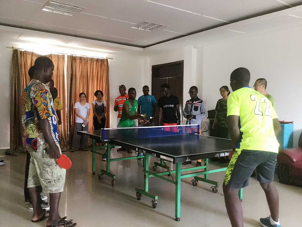 当地时间5月19日,利比里亚大学孔子学院在其驻地成功举行了乒乓球比赛,参加此次比赛的选手有利大孔院全体教师和部分学生。
