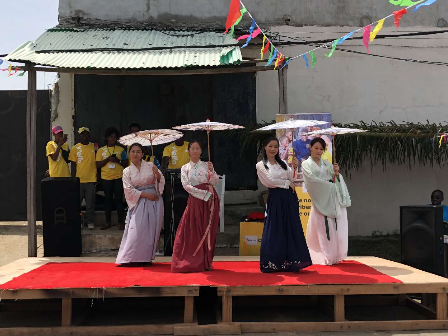 当地时间4月20日,利大孔院受利比里亚当地社团(阿尔法卡帕阿尔法女生联谊会,Alpha Kappa Alpha Sorority, Inc.)邀请参加了于蒙罗维亚举行的“利比里亚风情”商业文化节。该文化节旨在通过展示售卖当地各类美食和特色手工艺品,宣传利比里亚日益丰富的食物和文化,促进当地商业繁荣,在当地影响不俗。孔院老师马力平、贺云静、王倩和付平在此次文化节上表演了精彩的汉文化节目。