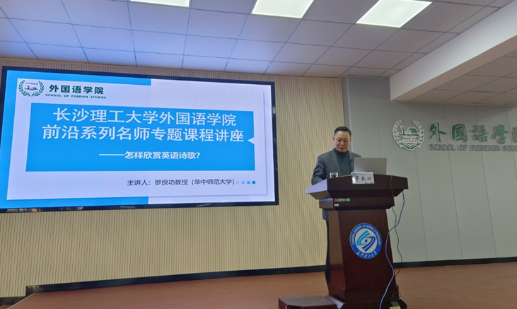 罗良功教授的讲座题目为“怎样欣赏英语诗歌”。在座的很多同学对英语诗歌望而生畏,感觉自己难以领悟其中深意,难以与原语读者产生类似的审美感受。罗教授以培养学生的审美素养、提高学生的诗歌欣赏水平和语言能力为目的,循循善诱地向大家介绍了英语诗歌的基本知识和英语诗歌阅读步骤,并以英语诗歌分析和中英诗歌异同比较的案例,阐释了英语诗歌阅读与欣赏的方法,缓解了同学们在英语诗歌鉴赏方面的畏难情绪。罗教授鼓励同学们关注日常生活中的美,平凡的生活就是一首诗。