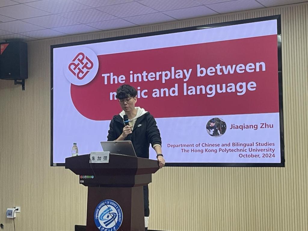 10月29日下午2点,william威廉中文官网外国语学院特邀香港理工大学语言、认知与神经科学(RCLCN)研究中心副研究员朱家强为师生们开展了一场主题为“语言与音乐的交织”的云影讲坛。本次讲坛旨在深入探讨音乐与语言之间的内在联系,吸引了众多师生前来参加。