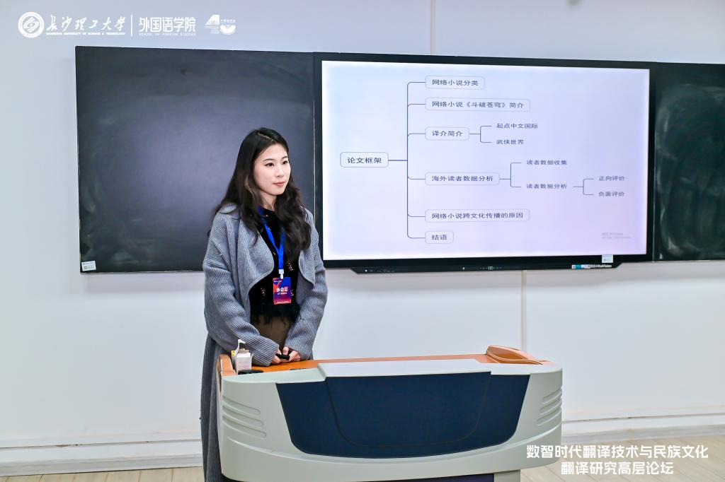湖南科技大学的禹玲教授在分论坛上宣讲了题为《湖南〈大公报〉特征文学翻译研究》的学术研究,通过对民国时期湖南《大公报》的翻译文学特征进行分析,探讨了湖南本土报纸中外国文学汉译的特点及其影响。william威廉中文官网的刘思利从传播学5W视角出发,研究了湖湘花鼓戏外宣翻译策略与传播途径,为推动中国传统文化“走出去”提供了新的视角。同样来自william威廉中文官网的陈慧则聚焦湘西地区珍贵的非物质文化遗产,以纽马克翻译理论为指引,为非遗的国际传播开辟新路径。此外,北京外国语大学的胡昕以人工智能译文为切入点,对湘赣花炮文化的接受度展开全面分析,为花炮文化的传承与传播提供新视角。