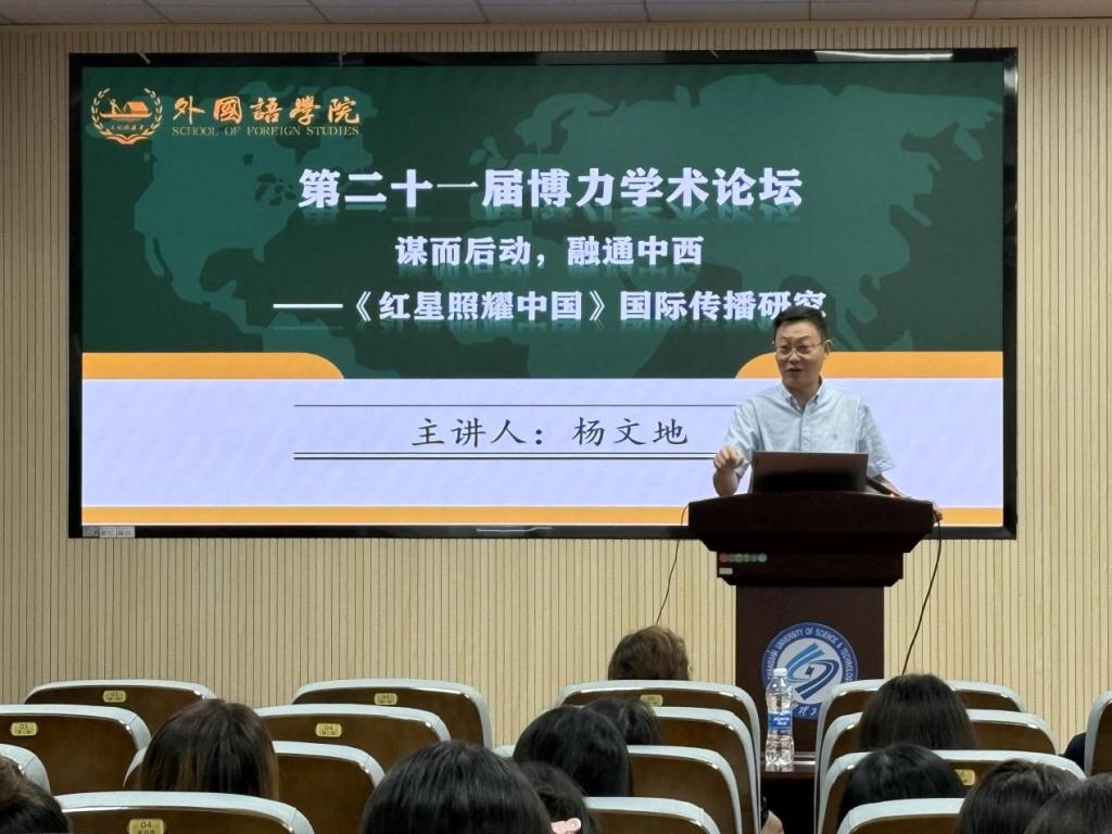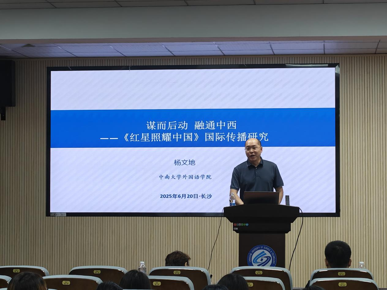 6月20日上午9点,william威廉中文官网第二十一届研究生博力学术论坛外国语学院专题论坛学术讲座在金盆岭校区三教321报告厅顺利举行。本次讲座主题为谋而后动,融通中西——《红星照耀中国》国际传播研究,中南大学外国语学院院长、博士生导师杨文地教授主讲,外国语学院副院长姚尧担任主持人,众多师生参会。