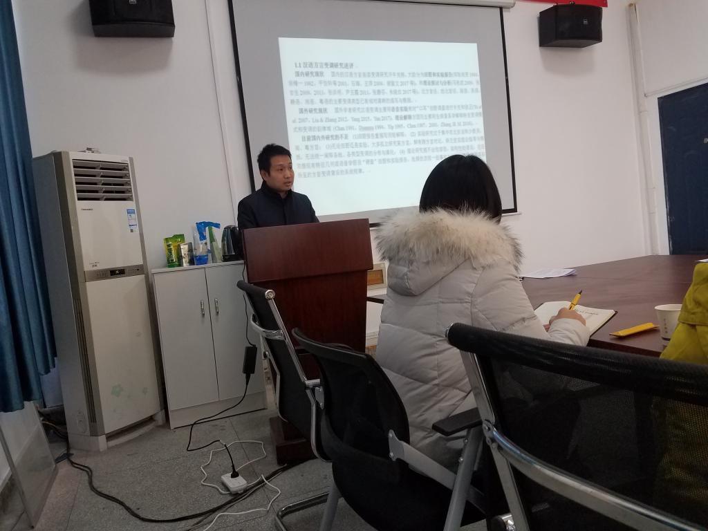 首先外国语学院胡伟博士对其申报书进行了讲解,唐贤清教授根据其汇报内容逐一分析了问题,提出了建议。紧接着他以胡伟老师的汇报内容为引线,分析了国家社科申报中存在的一些普遍问题。最后,唐贤清教授针对大家遇到的问题进行了解答。
