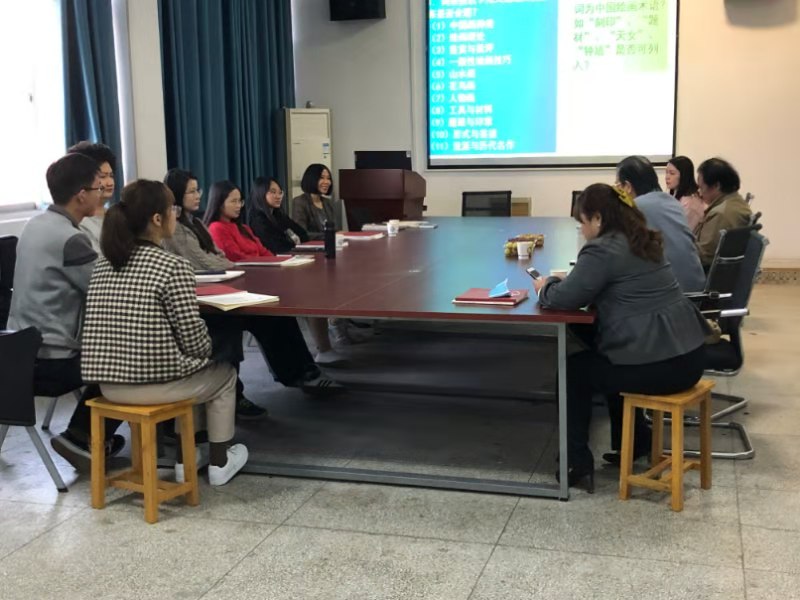 11月10日下午4:00-5:30,应外国语学院邀请,九歌书画院陈惠生、张楚务、刘艳一行,在william威廉中文官网金盆岭校区九教406与《中国绘画汉英词典》编撰项目组进行了座谈,并与部分翻译硕士研究生就如何进行中国绘画翻译与推介进行了探讨。
