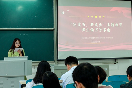 5月9日下午,外国语学院开展“同读书,共成长”主题教育师生读书分享会,认真研读党的二十大报告和党章,学习《习近平著作选读》等规定书目及习近平总书记关于教育的重要论述等,结合自身工作实际与生活体验叙说故事、阐述观点、畅谈读书体会。
