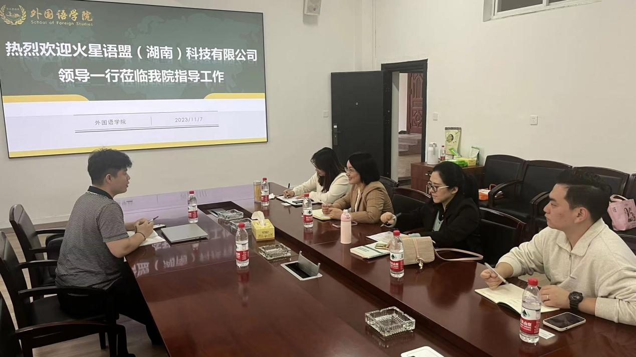 2023年11月7日下午,外国语学院于三号教学楼222会议室顺利召开火星语盟(湖南)科技有限公司校企合作座谈会。