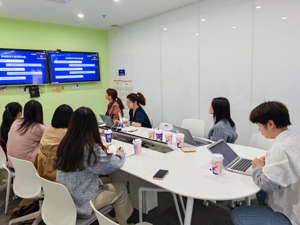 安克创新客户体验发展部部长vanilla.chu首先向来访师生表示欢迎,并与19届研究生校友舒安琴一起带领来访师生参观了公司的办公环境及了解各部门工作情况。