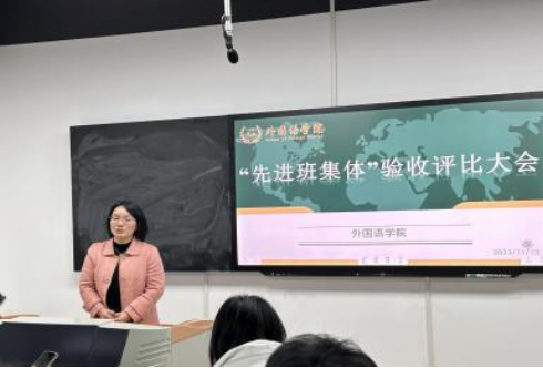 2023年11月15日晚,外国语学院于金盆岭校区3号教学楼611教室组织开展“先进班集体”验收评比活动,参会人员有党委副书记周芳老师、陈若晨老师、毛婕老师及各班班长和团支书,由院团委学生会办公室干事唐汇权主持会议。