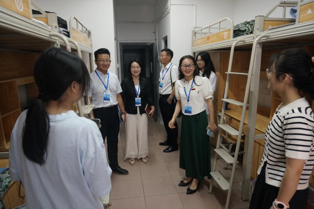 为更好地了解新生们的报道和生活情况,表达学院对新生们的关心和支持。9月15日上午9:00,外国语学院党委书记文丽丽、院长段胜峰、党委副书记周芳以及新生辅导员郭恒一同前往新生宿舍,对2024级新生进行了亲切的走访慰问。