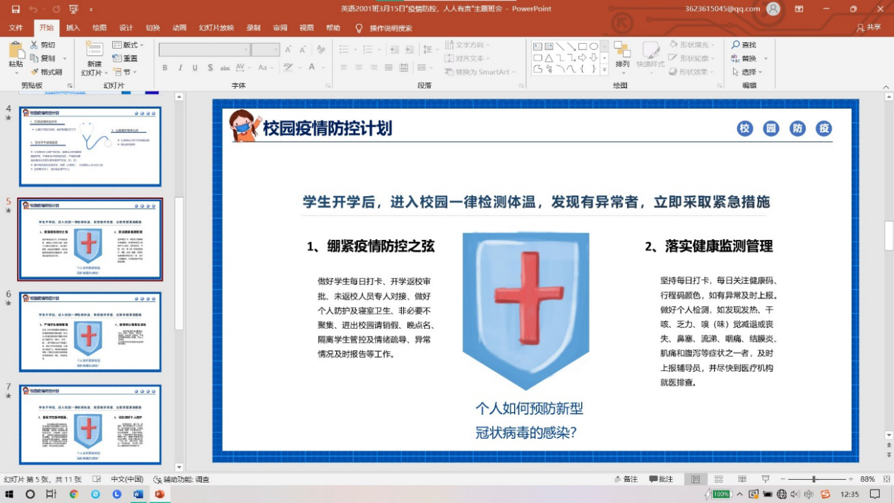 疫情形势仍然严峻,抓好防控仍是学校工作的重中之重。本次班会既提高了学生的防疫意识,又为学校的防疫工作做出了一份贡献。