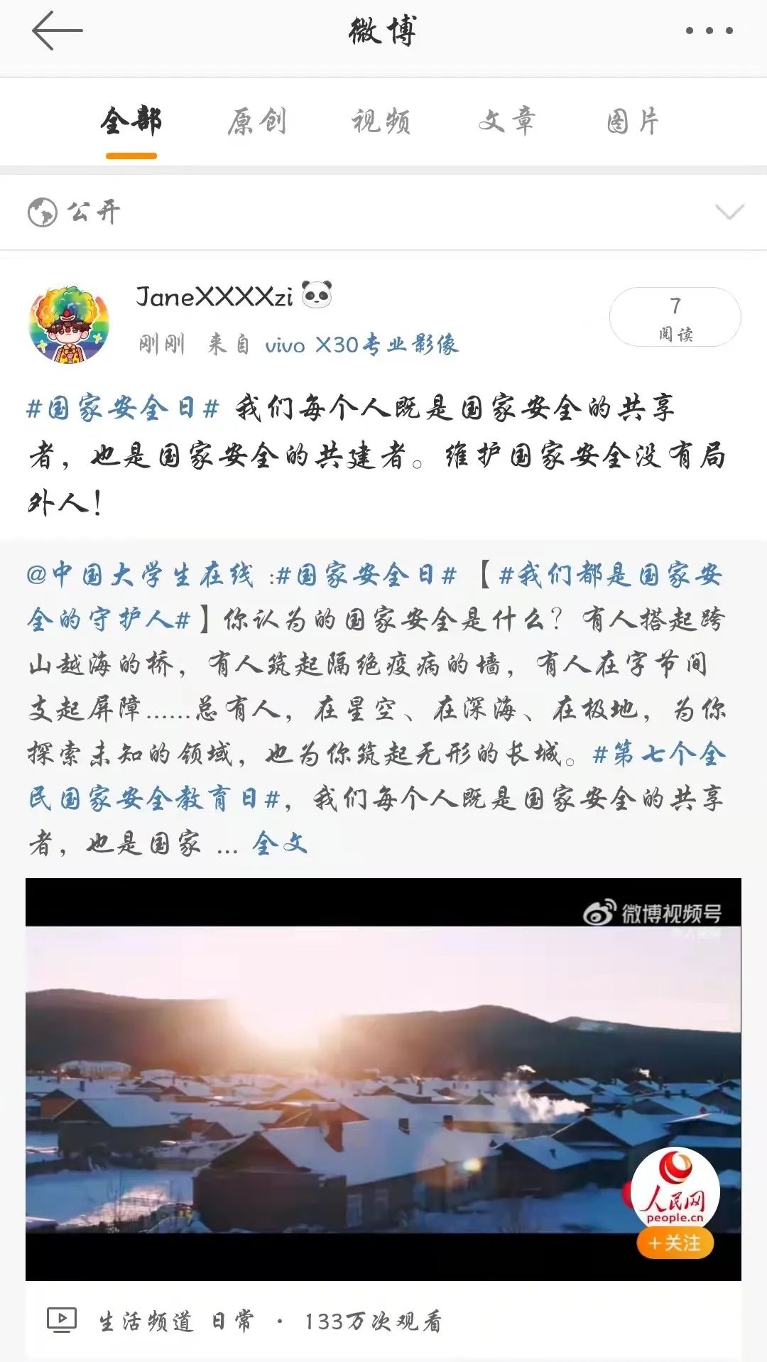 其中,英语2101班组织观看了“千万师生同上一堂国家安全教育课”公开课,让同学们深刻体会到大学生在践行国家安全的重要性。翻译2001班和翻译2002班组织线上观看“高校国家安全教育教学风采展示活动”作品,这让大安全理念在我们心中更加深刻。翻译2101班、翻译2102班和英语2102班开展了“国家安全教育主题短视频线上接力活动”,通过原创视频的创造,同学们更加深入了解到了国家安全的重要性。英语2001班和英语2002班组织学生线上观看了“反邪教警示教育进校园”宣传作品,提高了防范邪教意识和能力。19级各班级组织学生观看了“国开大讲堂·国家安全教育公开课”,这树立了同学们的大国国防观念。与此同时,外国语学院的同学们还积极以个人账号参与了“微博#国家安全日#话题”互动。