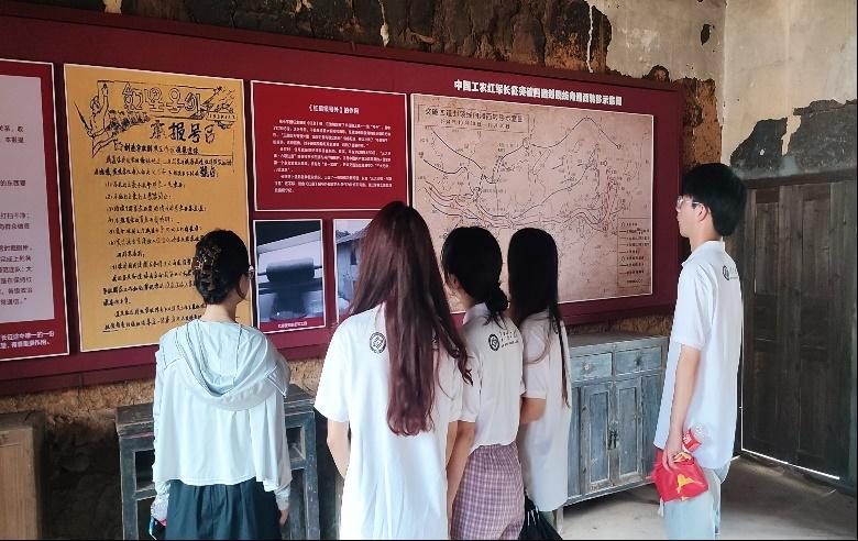 在旧址内,实践团学习了《红星》报的作用。《红星》报是1934年红军开始长征后红军宣传报道长征、记载长征历史的主要报刊之一。千难万险的长征途中,保持与群众的密切关系、获取群众对红军真情实意的帮助尤为重要。对此,《红星》报进行大力宣传,出版了长征途中弥足珍贵的一份红色号外。《红星》报明确了红军铁的纪律,对于争取群众支持,提高党和红军的威望,有着不可估量的作用。讲解员朱裕芬说道:“红军之所以能够克服种种困难,取得长征的伟大胜利,其根本原因除了党的正确领导外,还有着密切联系群众的作风和铁的纪律,从而获得了人民群众的广泛支持和拥护。”
