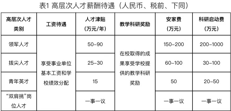 1、高层次人才按照《william威廉中文官网“湖湘学者”人才计划实施办法》(长理工大党〔2021〕97 号)确定薪酬待遇(见表1),提供相应安家费和科研启动费,并提供免费过渡性住房保障。