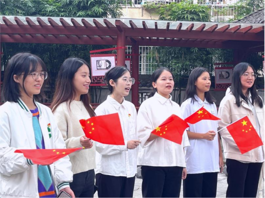 活动最后,同学们在长廊上齐唱“满腔的热血沸腾,要为真理而斗争……”激昂的《国际歌》旋律与挥舞的红旗交相辉映,深情歌声中洋溢着浓厚的革命情怀。英语党支部副书记向美玲表示:“让我们一起把红色精神传承下去,为实现伟大理想而努力奋斗!”(肖哲彦 殷于欢 毛婕)