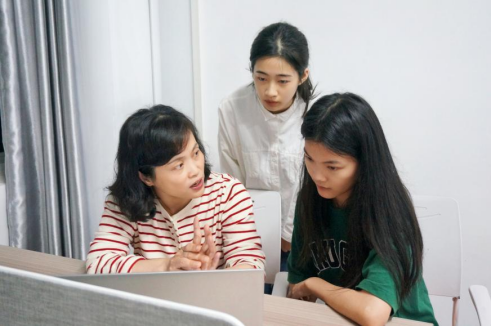 王浩萍指导邱海玲和何怡欣参赛。