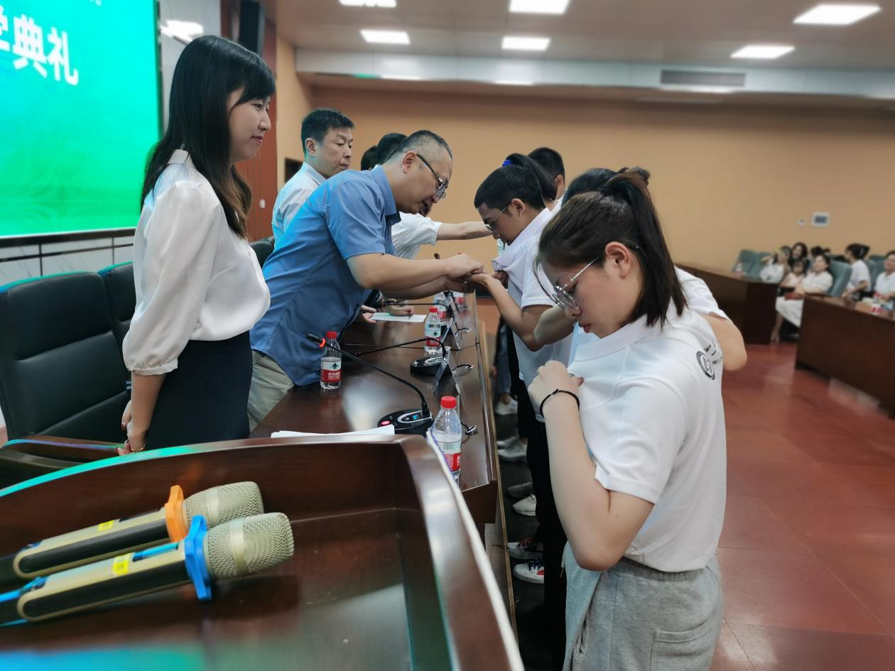 △学院领导为新生代表授予“文化摆渡者”徽章