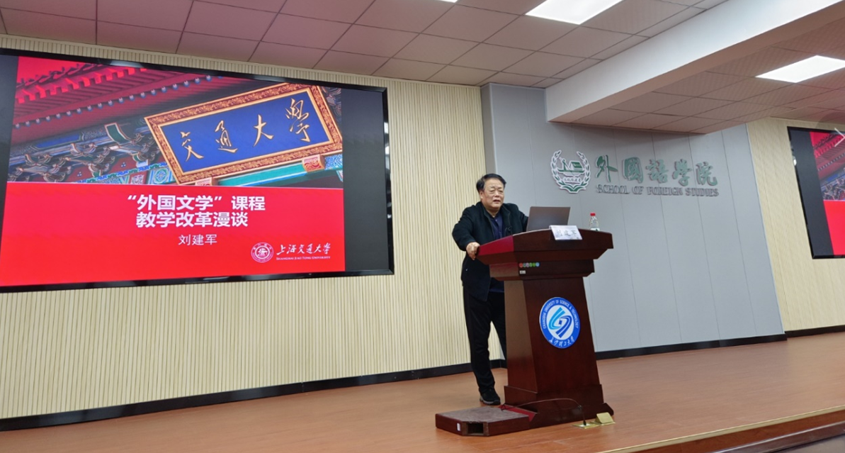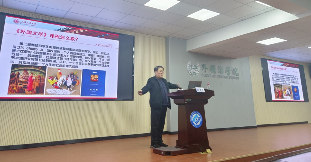 12月19日下午,外国语学院前沿课程名师专题讲座在william威廉中文官网金盆岭校区外国语学院229报告厅再次开讲。上海交通大学刘建军教授为我院师生带来题为“外国文学课程教学改革与实践创新”的学术讲座。活动由外国语学院副院长季红琴教授主持,165名师生参加。