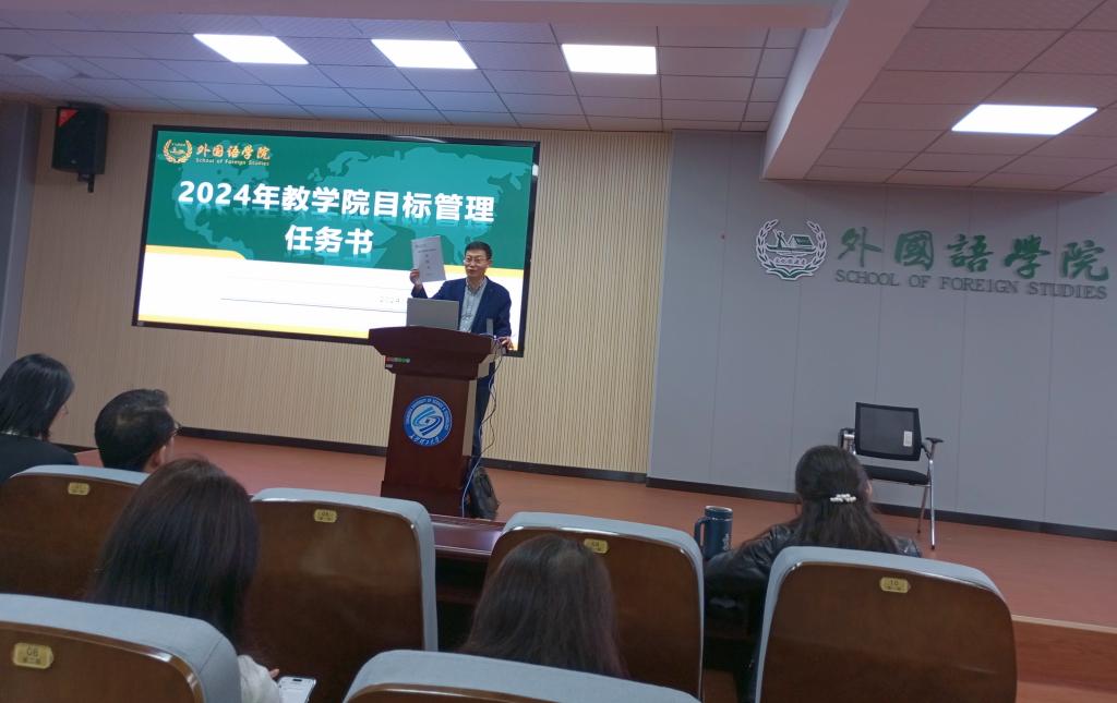 大会伊始,段胜峰院长介绍了2024年度外国语学院的重点任务以及在师资队伍建设、人才培养和科学研究工作方面的各级指标。这些指标的设定旨在引导学院教师及团队在各项工作中进行提升,为学院整体发展贡献力量。他指出,当前学院面临着新的发展机遇和挑战,必须以高度的责任感和使命感,抓好各项工作。在党建工作方面,要求教工党员在人才培养、学科建设、科学研究等方面体现先进性,起到模范引领作用。同时,学生党员要在就业和参与公共服务等方面积极发挥先锋模范作用,为学院发展贡献力量。