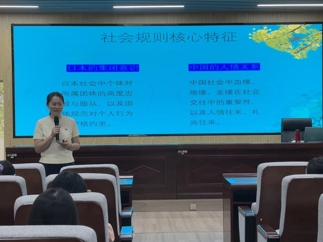 讲座最后,陈老师从历史渊源、社会结构等维度,深入剖析中日文化差异的深层逻辑。同学们纷纷表示,这场讲座帮助他们跳出单一文化视角,学会以包容、理解的态度看待异国文化,为今后日语学习、跨文化交流筑牢了基础,激发了同学们探索多元文化的热情。