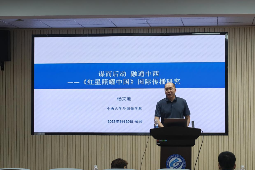 6月20日上午9点,外国语学院专题论坛学术讲座在金盆岭校区三教321报告厅顺利举行。本次讲座主题为谋而后动,融通中西——《红星照耀中国》国际传播研究,由中南大学外国语学院院长、博士生导师杨文地教授主讲,外国语学院副院长姚尧担任主持人,众多师生参会。