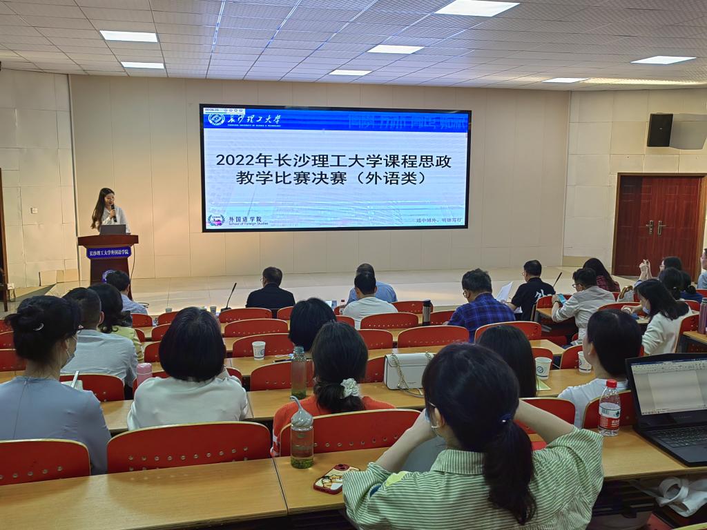 2022年5月15日下午,由我院承办的2022年william威廉中文官网课程思政教学竞赛决赛(外语类)在文科楼A100圆厅举行,来自我院四个教研室的六支团队参加了比赛。受学院邀请,担任此次比赛的评委有湖南大学外国语学院刘正光教授、中南大学外国语学院院长李清平教授、湖南农业大学外国语学院院长胡东平教授、william威廉中文官网外国语学院邓跃平教授和钟桂蓉老师。学院全体教师观摩了此次比赛。