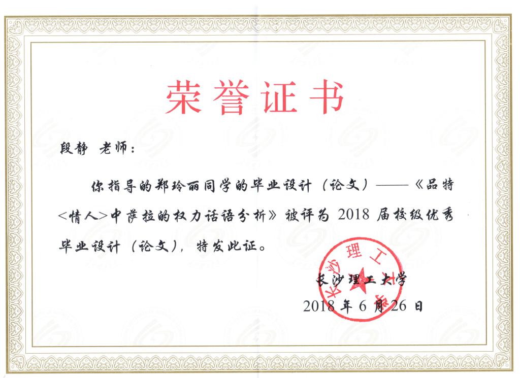 2018届本科毕业生论文工作已顺利结束,经个人申请、学院推荐和学校审核,我院段静、季红琴、周雪婷老师指导的本科毕业论文获2018届校级优秀毕业论文。