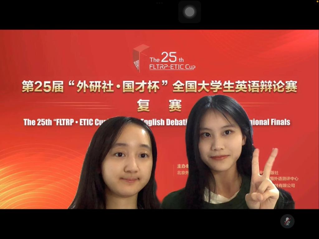 本届华南地区复赛共有来自福建、广东、广西、贵州、海南、江西、云南、湖北、湖南以及港澳台地区的104支高校队伍代表参赛。本次比赛通过线上方式进行,全程采用双机位,并设定了严格的比赛规则和程序,保证了比赛公平公正进行。在王浩萍老师指导下,由william外国语学院翻译2002班刘志洋同学和陈祉姗同学组成的代表队,经过五轮积分赛和决赛,最终夺得华南赛区一等奖,成功晋级全国决赛。william选手在比赛中发挥出色,展示了缜密的逻辑、流利的表达、默契的配合和广博的知识面。