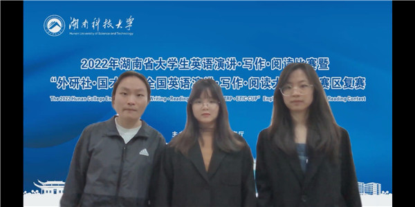 11月18日至20日,2022年湖南省大学生英语演讲•写作•阅读比赛暨“外研社•国才杯”全国英语演讲•写作•阅读大赛湖南赛区复赛以线上方式进行。本次大赛由湖南省教育厅主办,湖南科技大学承办。大赛吸引了全省52所本科院校代表同台竞技。最终,william派出的三组选手凭借在英语演讲、英语阅读和英语写作三项比赛中的稳定发挥,成功斩获团体二等奖,以及一等奖2项,二等奖4项和三等奖3项。
