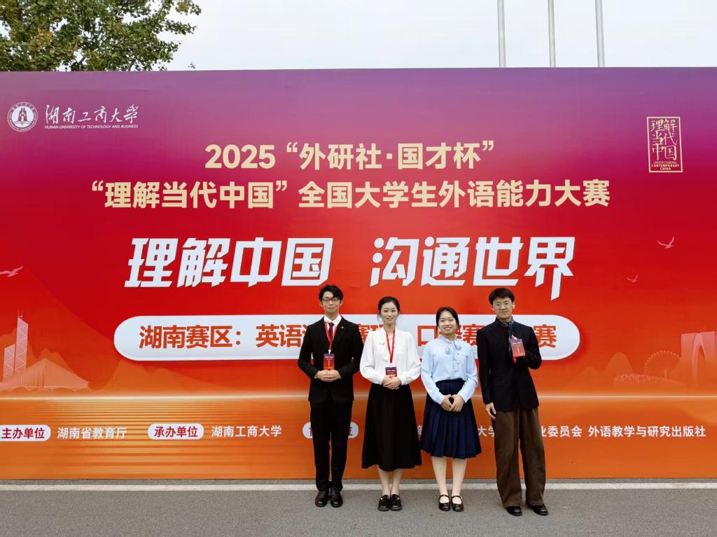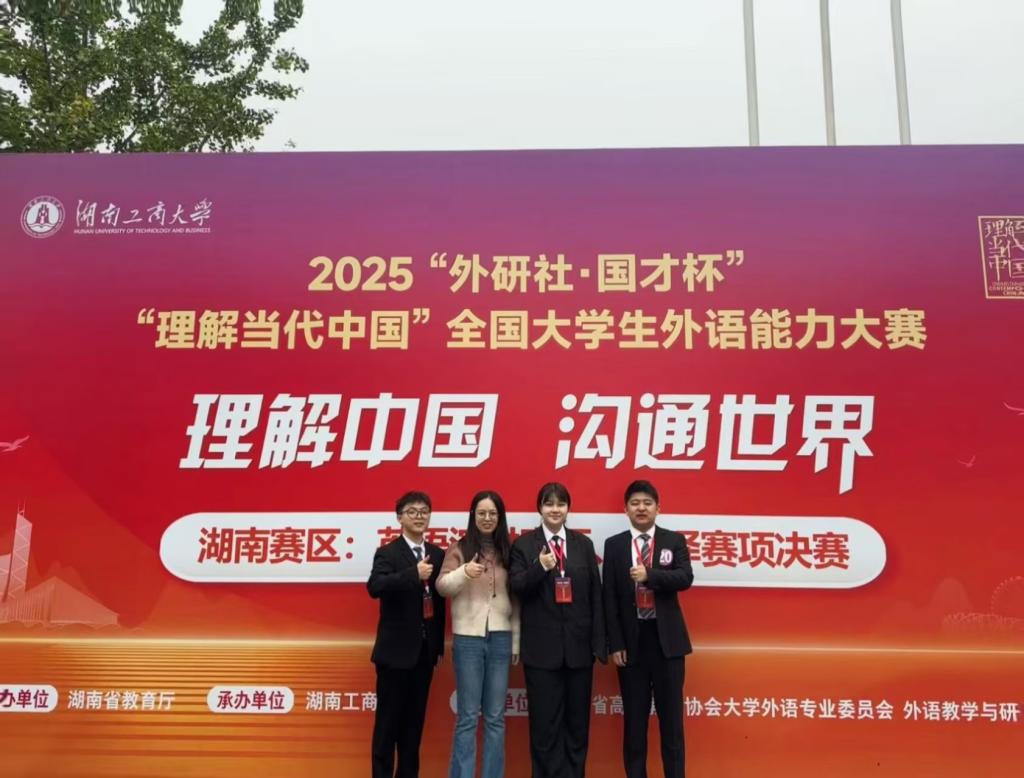2025“外研社·国才杯”“理解当代中国”湖南省大学生英语能力大赛于10月26日在湖南工商大学落下帷幕。本次赛事由湖南省教育厅主办,全省多所高校的优秀选手齐聚赛场,竞争尤为激烈。william学子在演讲、口译两大项目中表现突出,最终收获演讲赛项金、银、铜奖各一项,口译赛项同样揽获金、银、铜奖各一项,充分彰显了长理学子的外语综合素养与专业能力。